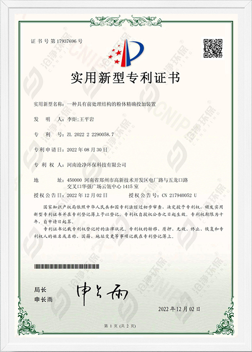 滄凈環(huán)保,是一家集科研、設(shè)計(jì),工程施工、調(diào)試于一體的智能粉體投加系統(tǒng)-國家級(jí)高新技術(shù)企業(yè)【編號(hào):GR202341000885】,旗下產(chǎn)品涵蓋水處理、危廢固廢處置,脫硫脫硝處理等領(lǐng)域,且通過ISO 9001:2015質(zhì)量管理體系認(rèn)證。